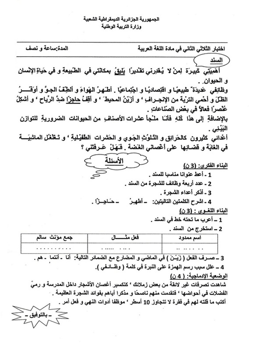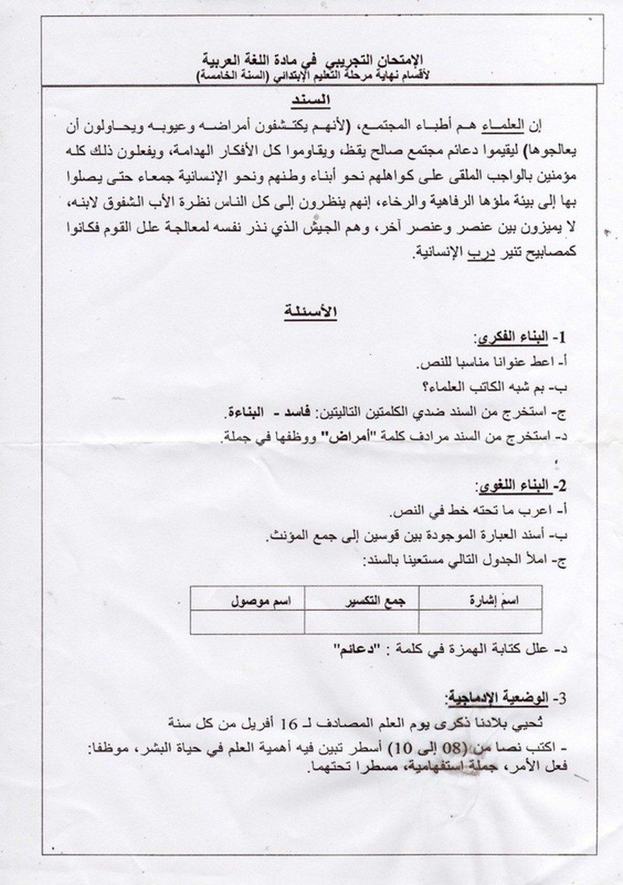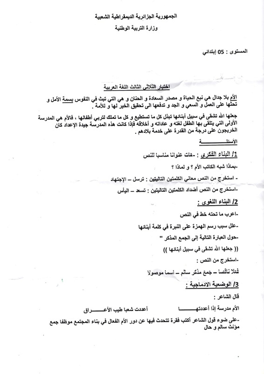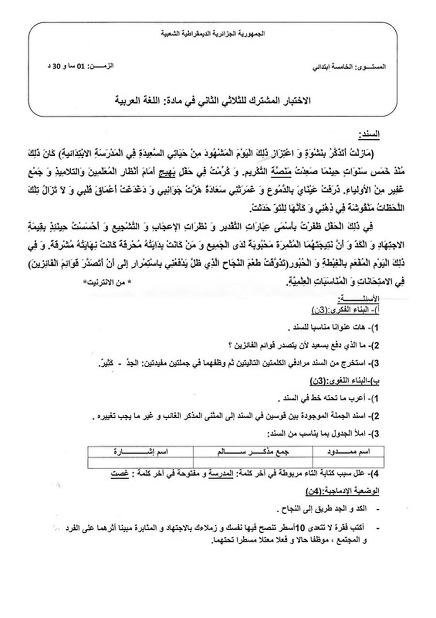 نماذج تجريبية في مادة اللغة العربية 5 ابتدائي الفصل الثالث إعداد المعلم غزال ميسوم